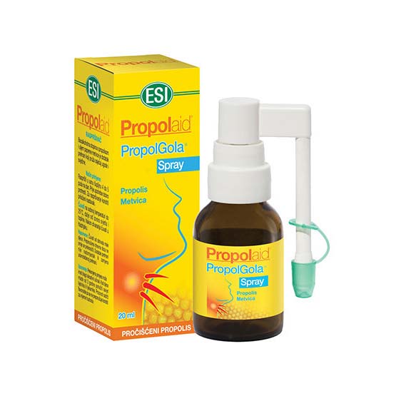 Sprej za grlo na bazi ekstrakta propolisa, sa aromom mentola, bez alkohola.