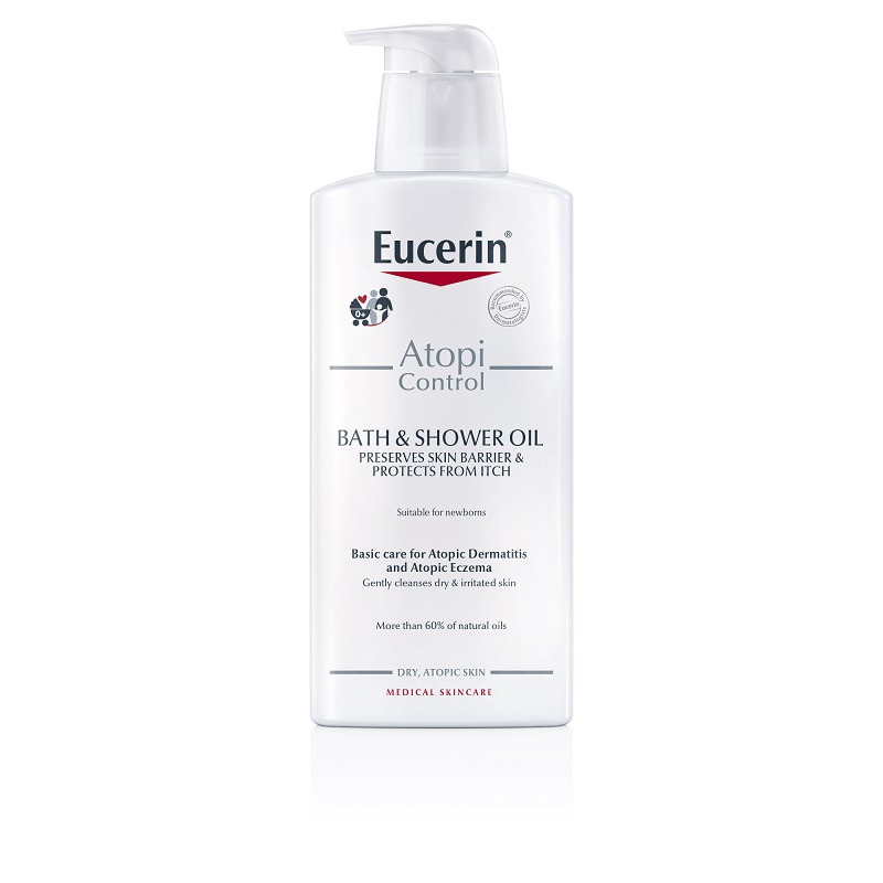 Eucerin AtopiControl ulje za pranje nježno čisti i umiruje atopičnu kožu, ublažava svrbež i sprječava daljnje isušivanje. Pogodno za odrasle, djecu i dojenčad od tri mjeseca nadalje. U slučaju korištenja za njegu dojenčadi, treba se koristiti jedino kao dodatak za kupanje.