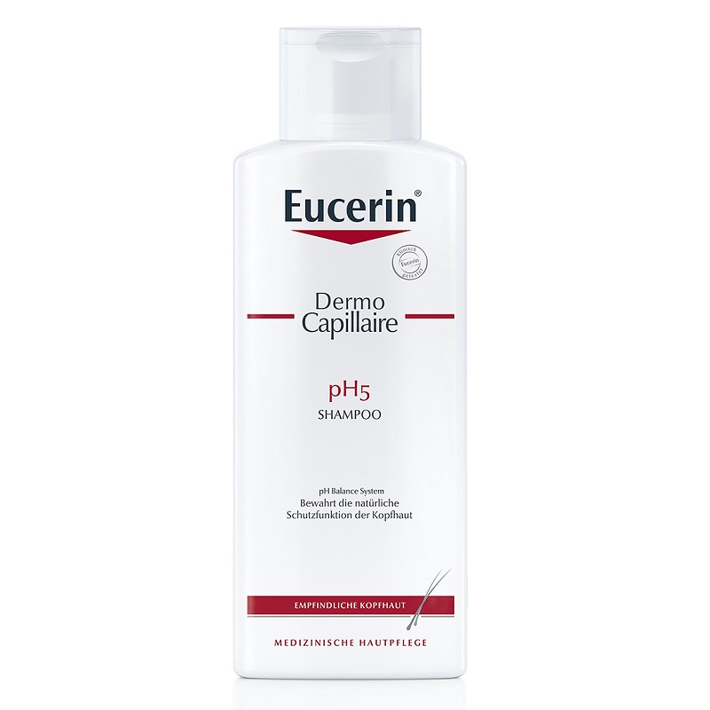 Eucerin DermoCapillaire pH5 šampon posebno je osmišljen kako bi održao prirodnu pH vrijednost kože i učinkovito očistio vlasište i kosu te spriječio suhoću i iritaciju. Uklanja nečistoće, pelud i alergene te daje kosi zdrav sjaj i osjećaj mekoće i podatnosti.