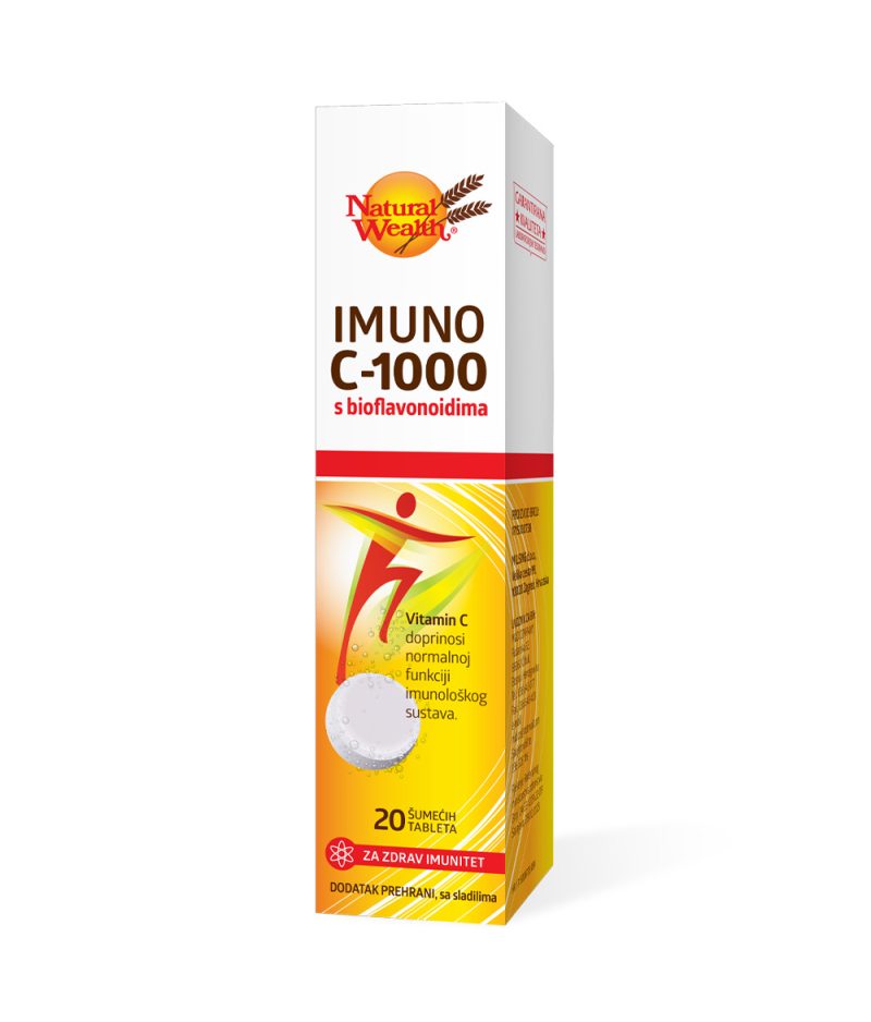 Natural Wealth® IMUNO C – 1000 s bioflavonoidima dodatak je prehrani sa snažnom dozom vitamina C od 1000 mg u svakoj šumećoj tableti. Natural Wealth® IMUNO C – 1000 s bioflavonoidima idealan je za podršku imunitetu u hladnijem dijelu godine. Posebice se preporučuje sportašima te osobama starije životne dobi. Sadržani vitamin C doprinosi normalnoj funkciji imunološkog sustava i zaštiti stanica od oksidativnog stresa.