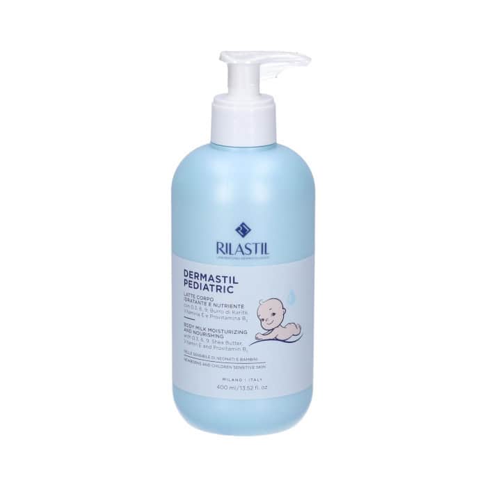 Rilastil Dermastil Pediatric mlijeko za lice i tijelo – Tekuća emulzija koja se brzo upija, pogodna za svakodnevnu upotrebu kod osjetljive kože beba i djece.