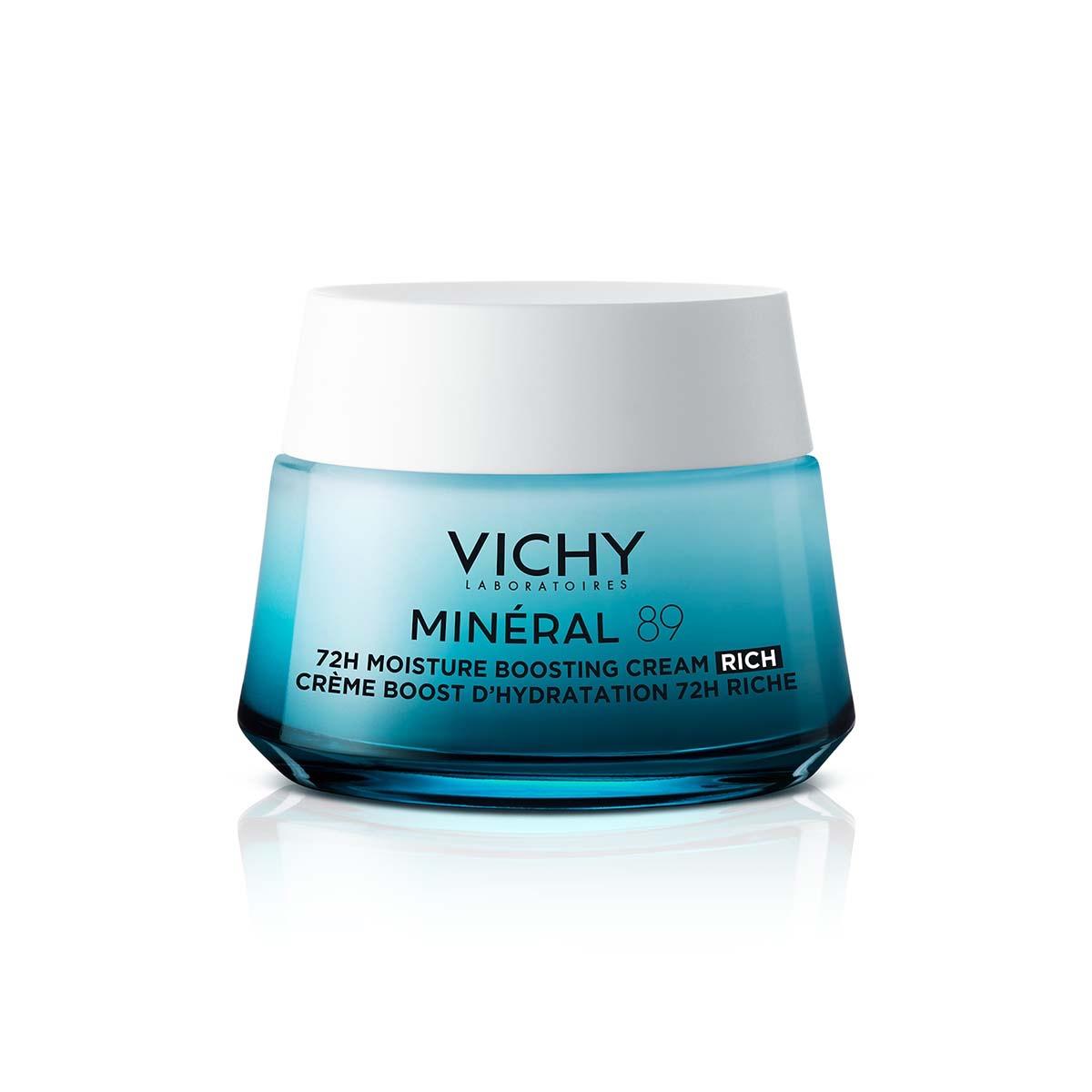 Vichy Mineral 89 Rich, bogata krema za 72-satnu intenzivnu hidrataciju suhe do vrlo suhe kože, formulirana je bez kontroverznih sastojaka, pomaže vratiti razinu lipida u kožu, jača kožnu barijeru i pruža dugotrajnu hidrataciju za do 72 sata.