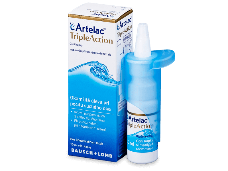 Artelac Triple Action dostupan je u provjerenom sustavu posebnog mehanizma pumpe. Ova umjetne suze ne sadrže konzervanse i stoga se vrlo dobro podnosi. Osim toga, bočicu karakterizira intuitivno rukovanje te sigurno i jednostavno korištenje.