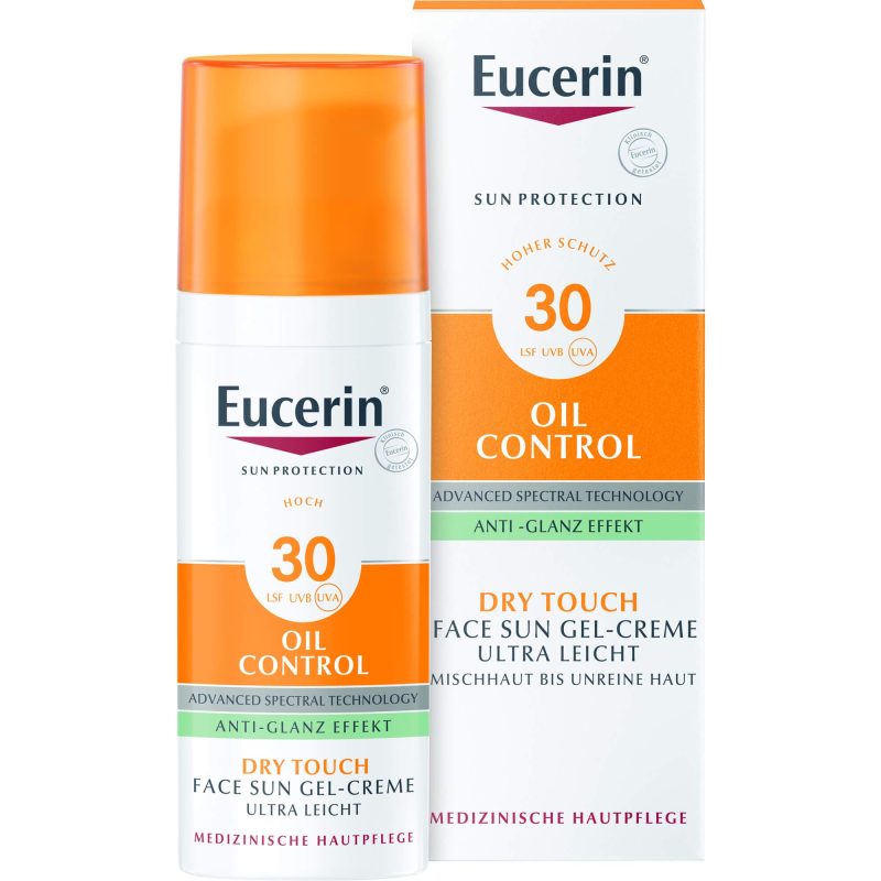 Eucerin Sun Oil Control gel-krema za zaštitu kože lica od sunca SPF 30+ je svakodnevna krema za zaštitu od sunca za lice za masnu kožu i kožu sklonu aknama.