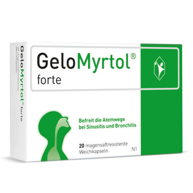 Čisti biljni aktivni sastojak standardizovani mirtol u lijeku GeloMyrtol® forte djeluje sveobuhvatno na cijeli spektar sinuzitisa i bronhitisa, od početka infekcije do njene pune manifestacije. GeloMyrtol forte ne samo da olakšava subjektivni osjećaj bolesti već dokazano omekšava i izbacuje gustu sluz, smanjuje bol u obrazima i broj napada kašlja. GeloMyrtol forte dokazano smanjuje potrebu za dodatnom terapijom antibioticima za više od 40%.2